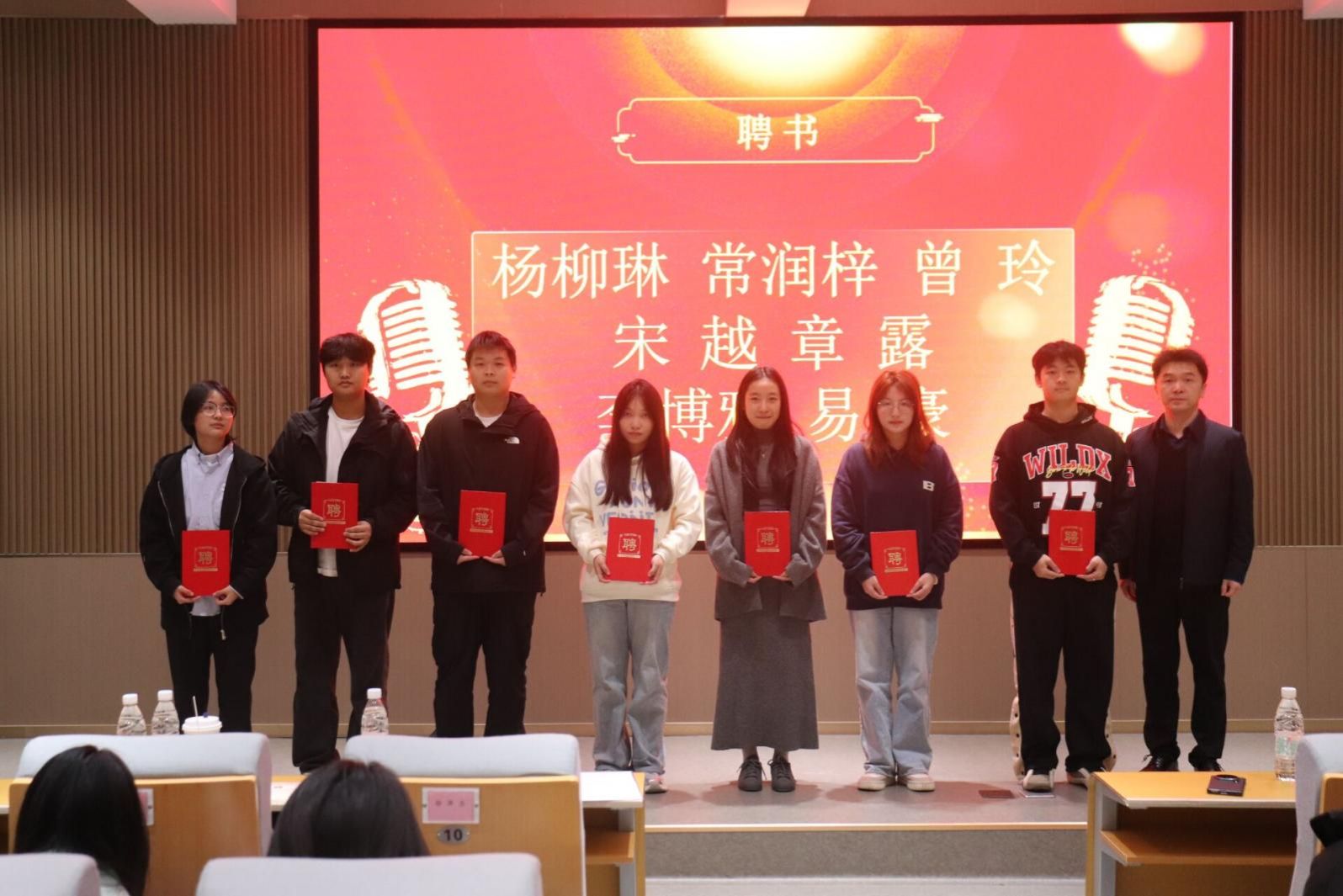 大会第二个环节,孙书记为杨柳琳、常润梓、曾玲等第九届学生会骨干颁发聘书。第十届分团委学生会主席任熙宣读了《第十届主席团及干部任命名单》,并宣读表彰文件及优秀干事名单,对第十届分团委学生会中表现突出的成员予以表彰。