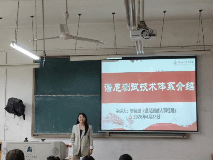 为深化产教融合,推动专业教学与行业前沿技术接轨,帮助生物与化学工程学院学子拓宽专业视野、了解行业技术动态,2026 年 4 月 22 日,学院特邀谱尼测试集团武汉公司人事经理罗女士,开展 “谱尼测试技术体系介绍” 专题技术讲座。学院相关专业教师及学生代表到场聆听,共同学习第三方检测行业的技术体系与发展趋势。