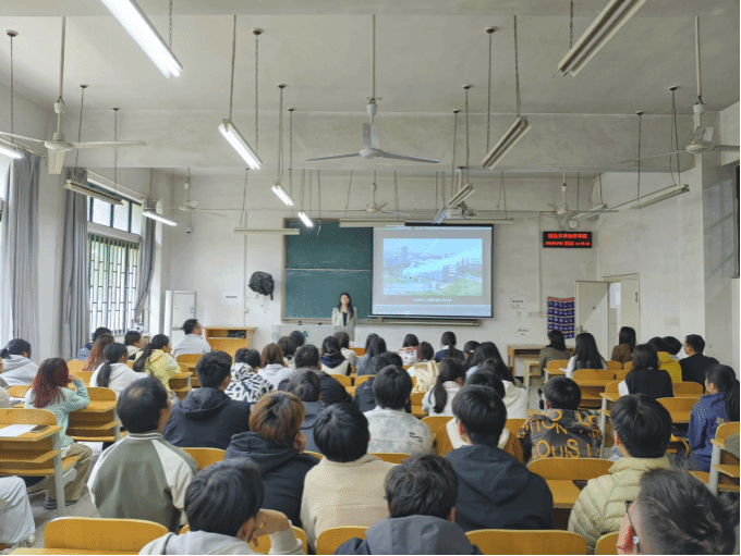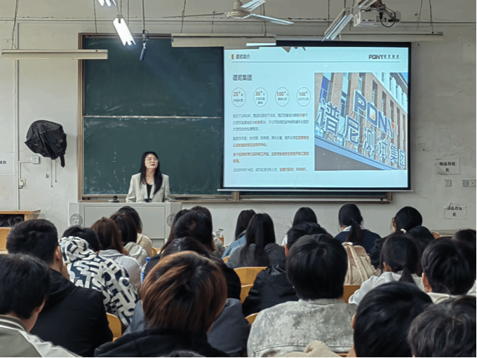 讲座上,罗经理从谱尼测试集团的整体概况切入,详细介绍了集团 20 余年的发展历程、全国性实验室布局与业务版图,重点分享了武汉公司在华中地区的技术定位与业务方向。她围绕谱尼测试的核心技术体系,系统讲解了集团在医药、环境、食品、化工等领域的检测技术平台、实验室质控体系、前沿检测技术应用及标准化流程建设,让在场师生直观了解了第三方检测行业的技术标准、质量管控与创新发展方向。