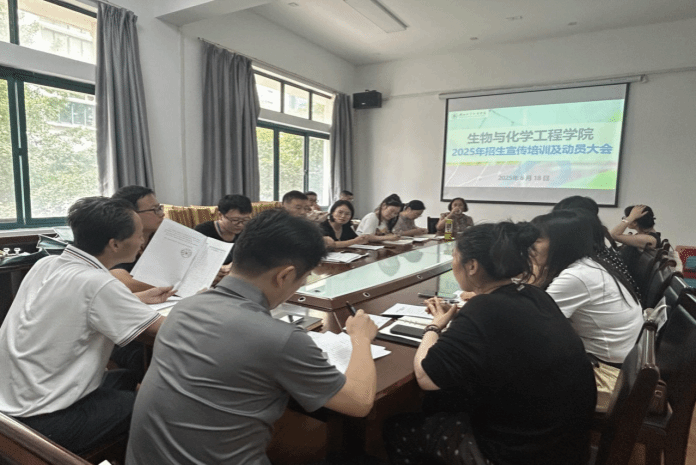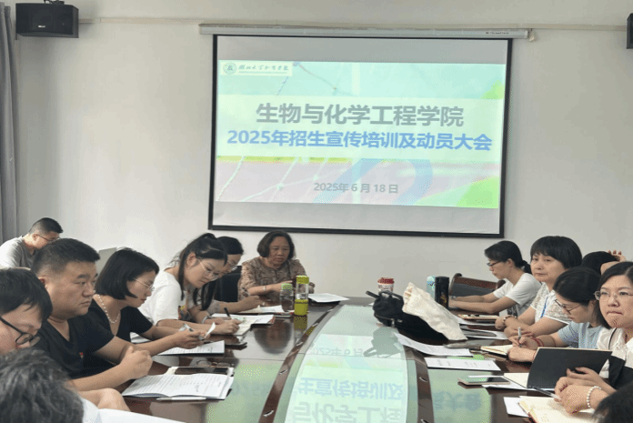 2025年6月18日,生物与化学工程学院在知化楼206会议室召开2025年招生宣传动员大会。学院全体教职工参会,共商招生大计,为学院招生工作的顺利开展凝聚智慧与力量。