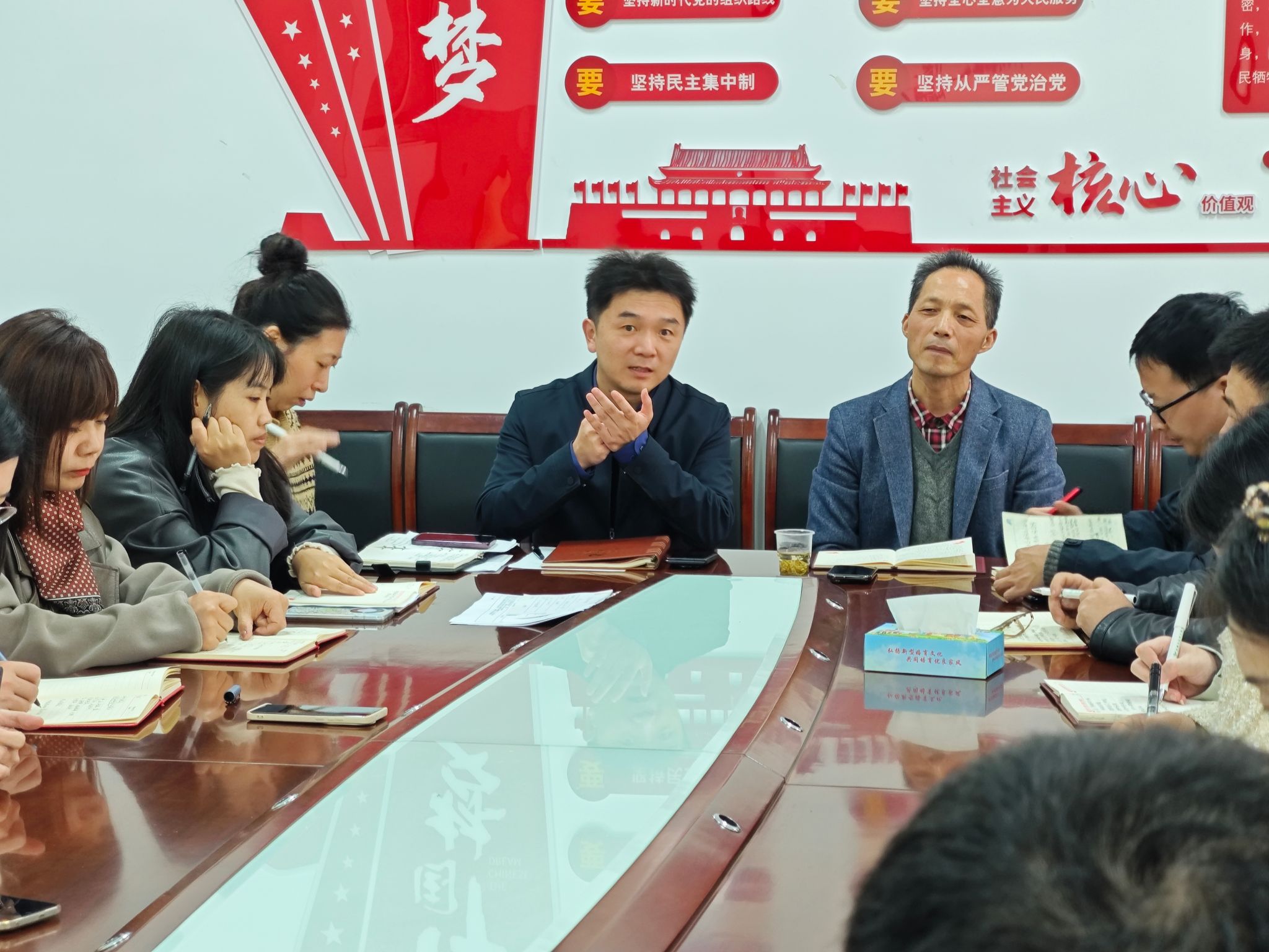 10月22日13时,我院在知化楼206会议室召开主题党日活动——"教育强国建设"第二次集中大课研讨交流会,围绕教育强国战略、教育面临的挑战及教学工作优化思路展开深入研讨。会议由学院党总支书记孙高飞主持,全体教师党员参加。
